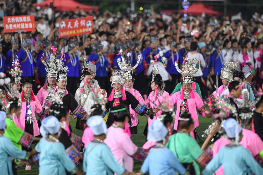 多的特点演出“分歧村寨群,化的相易碰撞分歧民族文,化为‘村超’添彩璀璨的各民族文。事件局局长盘英说”榕江县民族宗教,族来往相易交融平台“村超”搭修了各民,地乘客共享屯子嘉时光全县各族大家、世界各,族结合友爱增进了民。